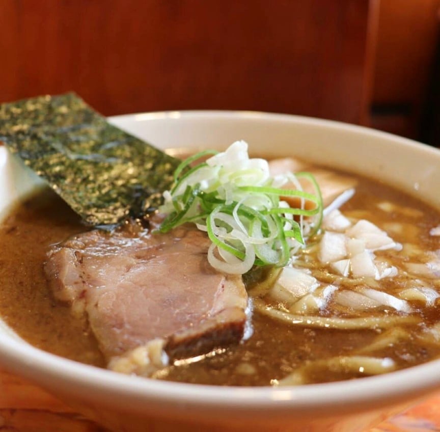 丸鶏や豚骨などの素材の旨味を生かした魚介系白湯スープに、ニンニクを極限まで焦がした自家製のマー油をプラス。麺は5種類の小麦粉をブレンドした自家製の中細ストレート麺。香ばしい苦みと素材の深い旨みを楽しめる一杯です。